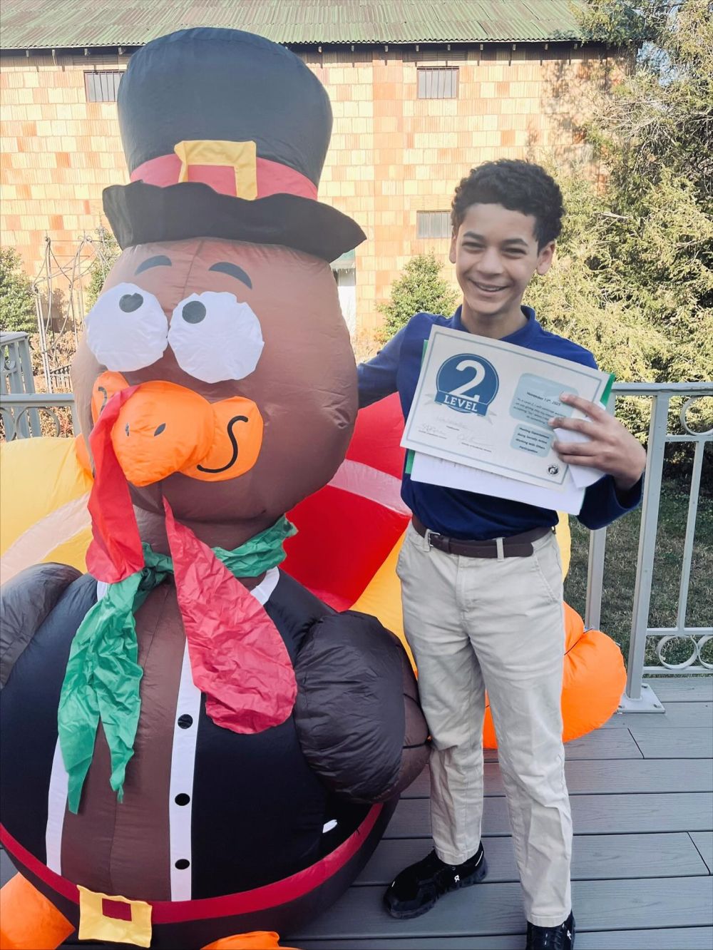 While working our way towards fall break, our community took time this week to give thanks and celebrate. The past week saw multiple students earned new levels. Yesterday, we came together for our longstanding tradition of a potluck Thanksgiving feast. Staff and students contributed to the meal which was attended by some of our parents and former staff members. Our kitchen team provided the core dishes such as turkey and mashed potatoes making sure our plates and stomachs were full. After some time to digest, the students took the field for our annual Turkey Bowl. It was a high flying game of flag football that came down to the wire with a 33-32 photo finish!